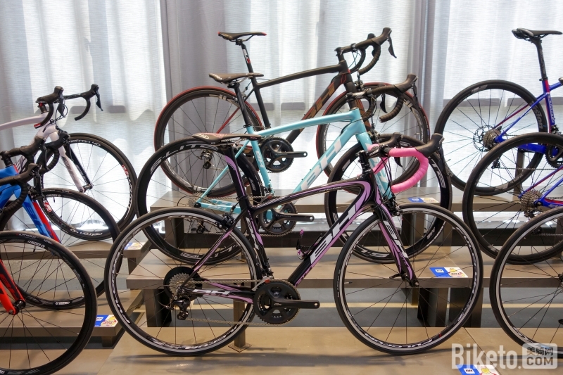 ▲氣動(dòng)破風(fēng)競(jìng)賽車型G7碟剎版,后面的山地車為Ultimate 29
