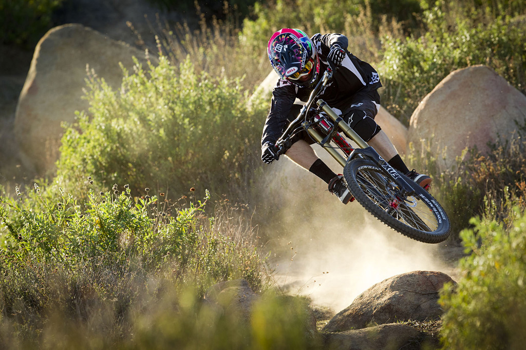 Aaron:這個(gè)很難解釋清楚,因?yàn)槲乙苍谶@點(diǎn)上糾結(jié)了很久。我從四歲開始騎BMX并獲得了很多成功,所以從很小的時(shí)候開始我就有信心我能騎得很快,這是我能做得很好的領(lǐng)域,而且從結(jié)果上看,我很可能還比大多數(shù)人騎得都快。從小到大不管是以前的摩托越野教練還是現(xiàn)在的山地自行車教練都是非常正直的人。他們甚至比你期望的還要正直,但是他們真的會(huì)讓你保持謙遜并渴求進(jìn)步。當(dāng)你開始不斷看到自己獲得成功的時(shí)候就會(huì)變得越來(lái)越有自信。你知道成功來(lái)自何處也知道如何獲得成功,這都只需大量的工作。成功需要自信以及明白自己擁有了哪些東西,但是總會(huì)有一些自己并不確定的地方,如果你沒有投入100%的努力你永遠(yuǎn)不會(huì)知道最終結(jié)果,所以我一直認(rèn)為嘗試—失敗—繼續(xù)嘗試的行為比不嘗試又想知道事情結(jié)果的行為更好。也許這對(duì)每個(gè)人來(lái)說都不一樣,但是對(duì)我來(lái)說這是我非常喜歡做的事情,我想我會(huì)為此付出一切并去了解最終的結(jié)果,就目前來(lái)看結(jié)果非常好(笑)。