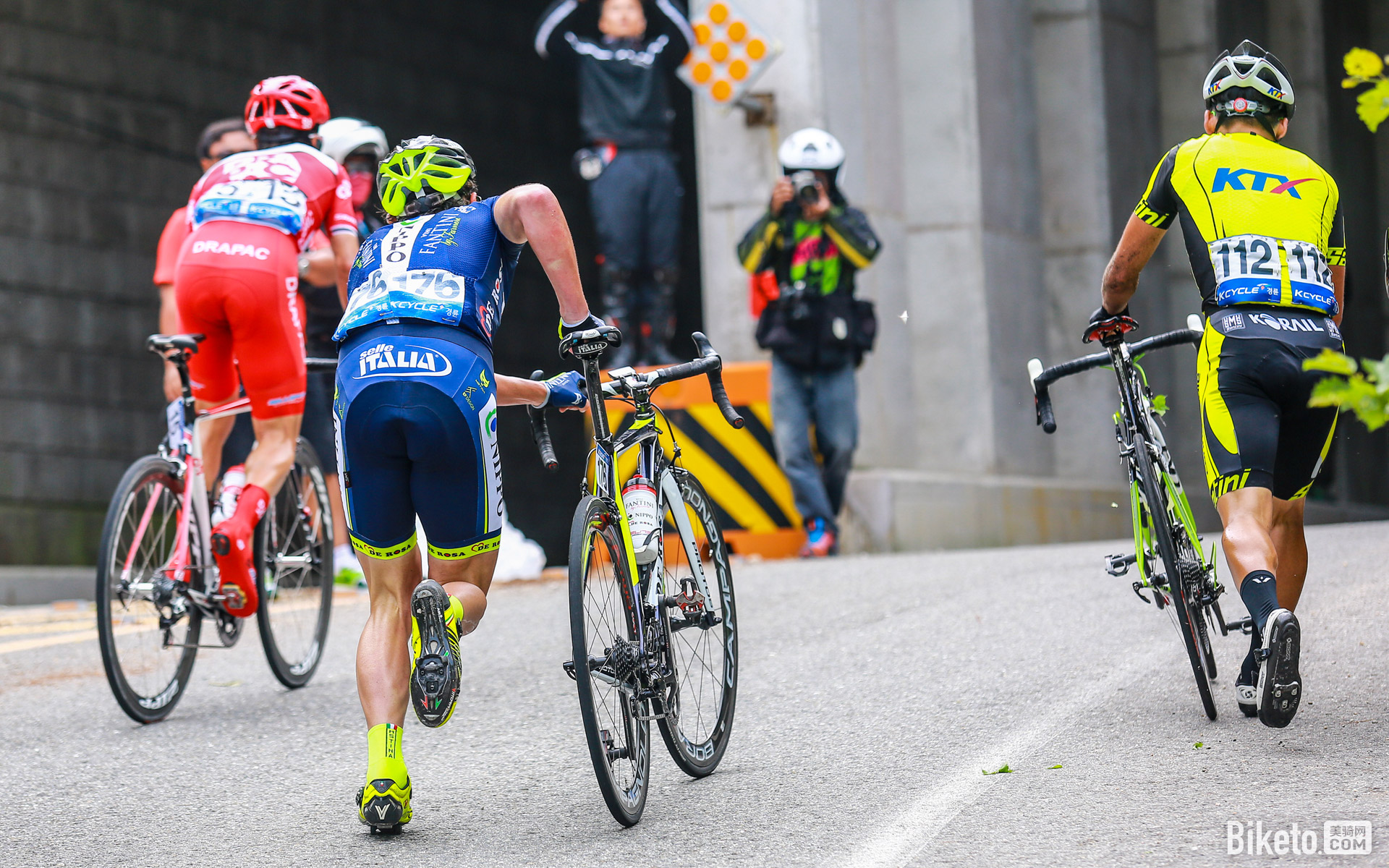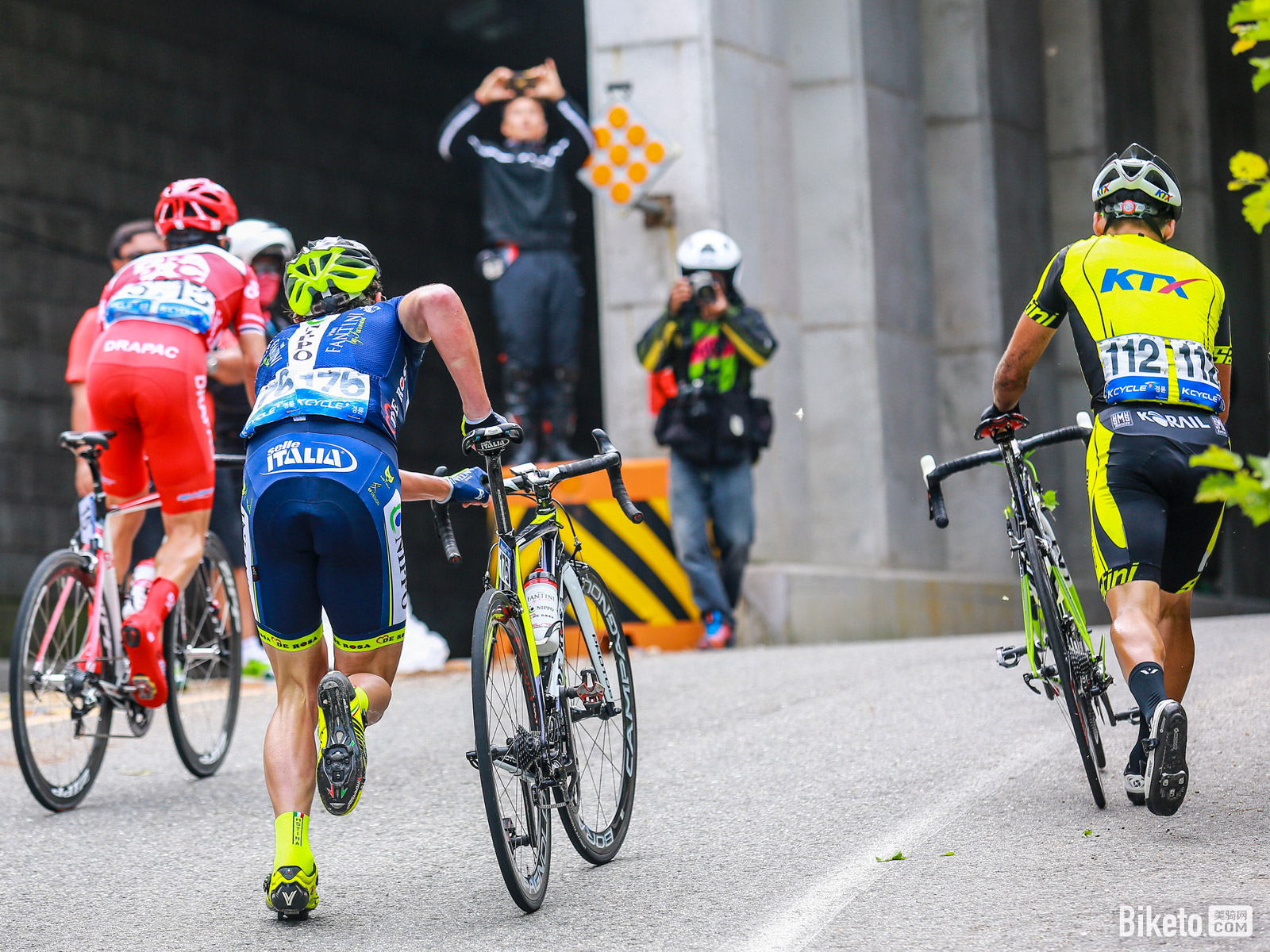 當(dāng)精力耗盡,選手們不得不選擇停下來推車,暫停歇息片刻,重新再上路,進(jìn)行比賽。