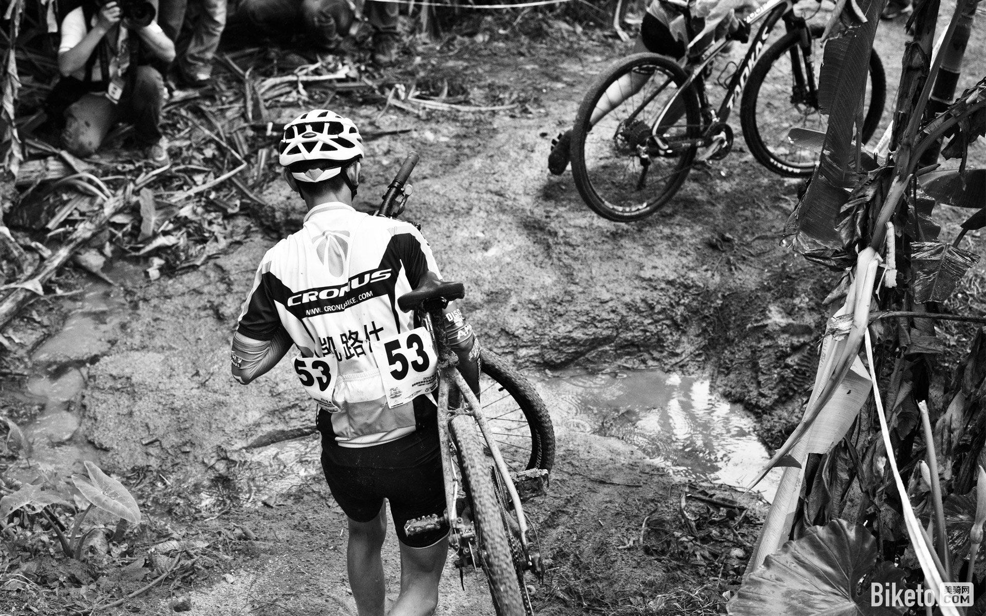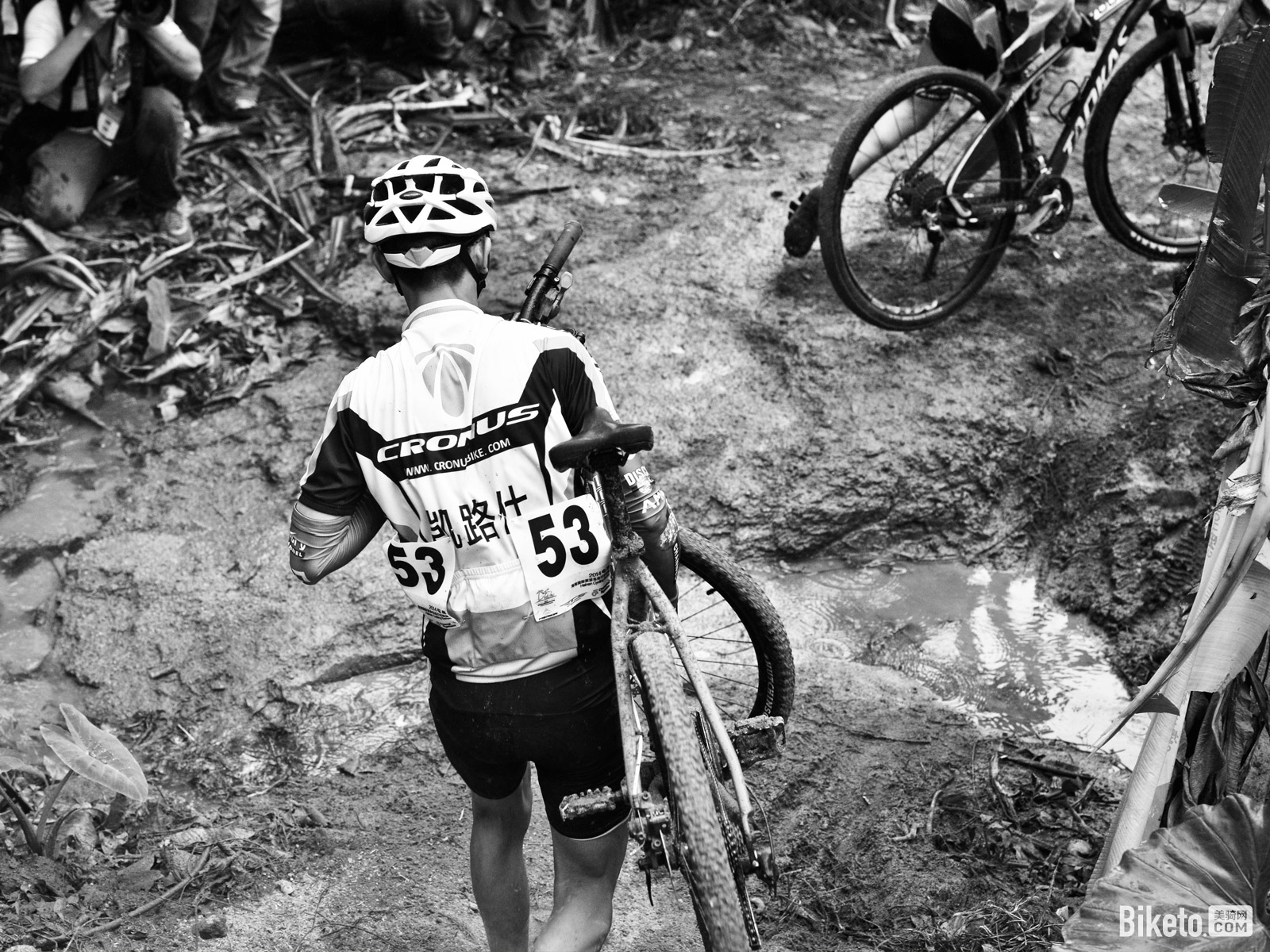 2014年3月30日上午全國山地車冠軍賽第三站于貴州進行個人計時賽部分。計時賽選手間隔發(fā)車,完成單圈5.1公里賽程,由于個人計時賽積分與選拔賽無關(guān),加上下雨路面泥濘濕滑,所以有不少選手選擇發(fā)車后直接退賽。