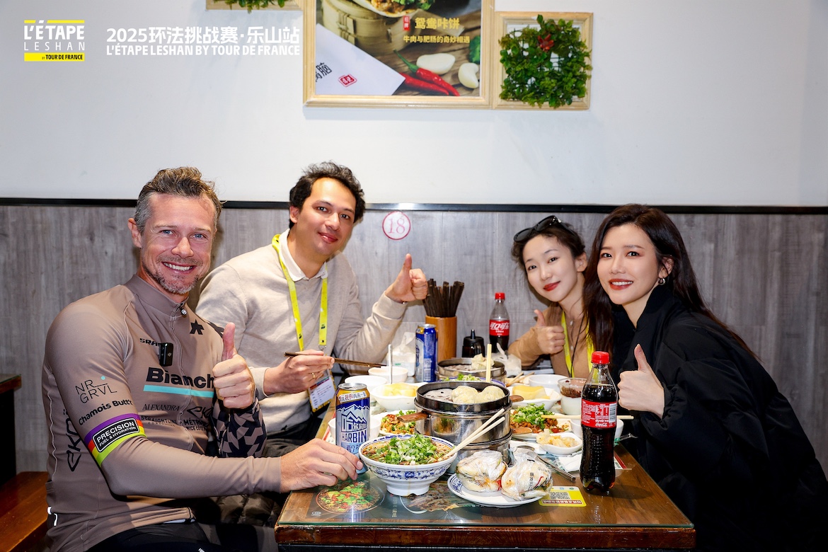 賽事期間配套舉辦的環(huán)法嘉年華成為亮點。在峨眉山體育館廣場主會場,設置了環(huán)法百年歷史博物館、品牌互動展區(qū)、樂山非遺文化展示及特色美食區(qū)。組委會特別邀請了環(huán)法傳奇車手尼古拉斯·羅奇、奧運冠軍陳一冰、王家超等嘉賓,著名主持人劉語熙擔任環(huán)法官方體驗官,與選手和觀眾分享樂山美食和騎行文化,極大地豐富了賽事的文化內(nèi)涵,實現(xiàn)了環(huán)法品牌與樂山本地文化的深度對話與融合。