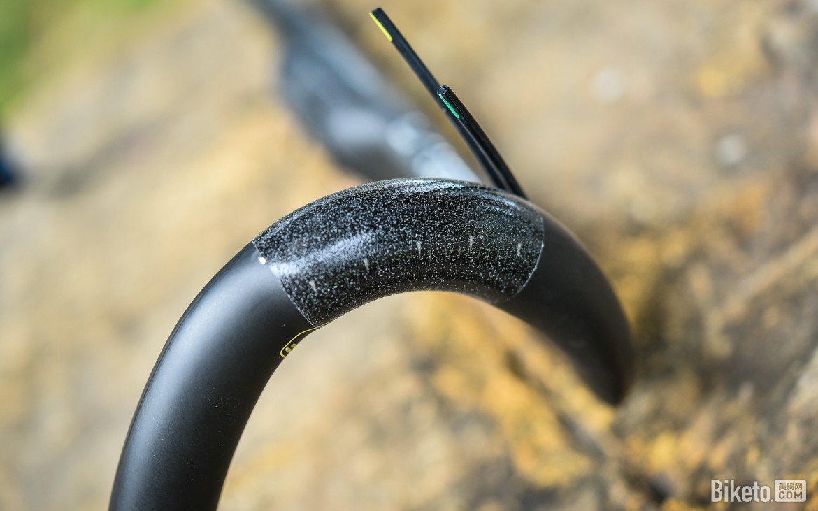 現(xiàn)今大部分碳纖維車把都會(huì)在手變夾持位進(jìn)行磨砂表面處理,無須額外添加止滑劑,就可以防止手變位移。至于上面的標(biāo)尺涂裝,嗯,我覺得還是不太準(zhǔn)的,調(diào)整手變角度還是以自己的感覺為主吧。