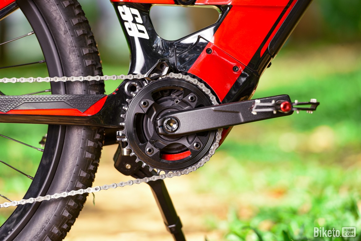 八方M510電機支持ISCG05規(guī)格導(dǎo)鏈器的安裝,這輛車也配備了小巧的導(dǎo)鏈器。整車使用SRAM 12速變速系統(tǒng),前面38T正負(fù)齒+導(dǎo)鏈器的設(shè)定讓變速更加精準(zhǔn)穩(wěn)定。除此以外在牙盤區(qū)域,布魯萊斯還特別設(shè)計了定制的牙盤護罩,和車架完美融合,不僅可以有效保護電機還可以解決褲腳碰鏈條的問題,同時也起到了美觀作用,這也是布魯萊斯在結(jié)構(gòu)上的一個小創(chuàng)新。