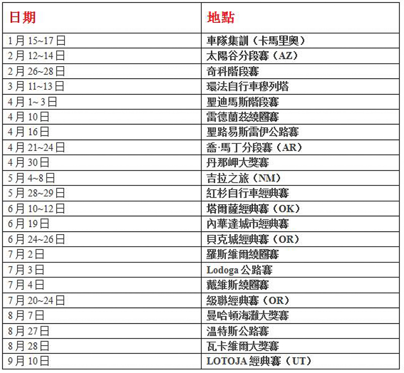 2016 TEAM PPBI SCHEDULE (2016年太平洋自行車隊(duì)計(jì)畫)