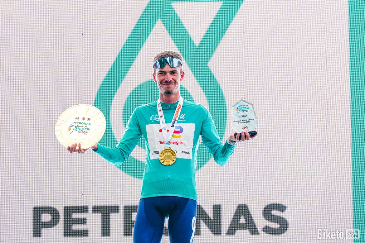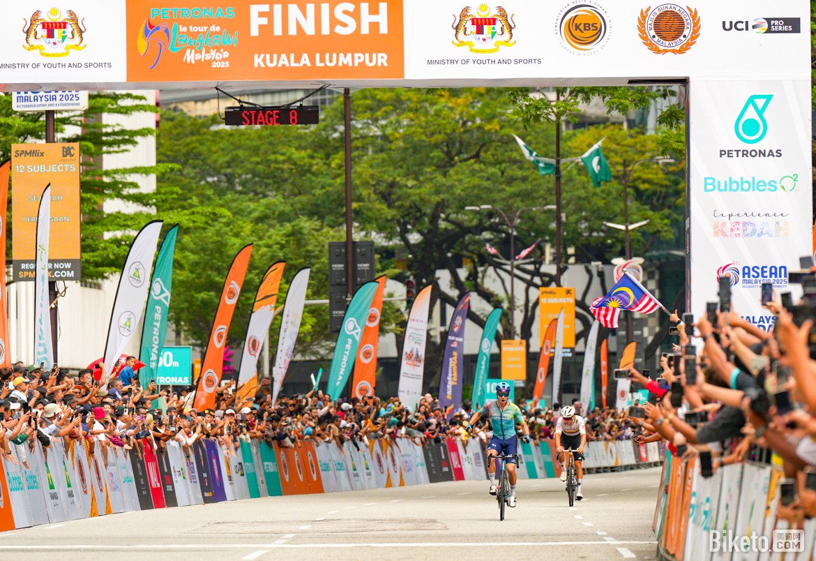 10月5日環(huán)蘭卡威第八賽段結(jié)束。喜德盛阿斯塔納車手Aaron Gate在吉隆坡PETRONAS Twin Towers(KLCC)贏下收官戰(zhàn)的勝利,Joris Delbove(TotalEnergies)順利過線,收獲2025環(huán)蘭卡威總冠軍。