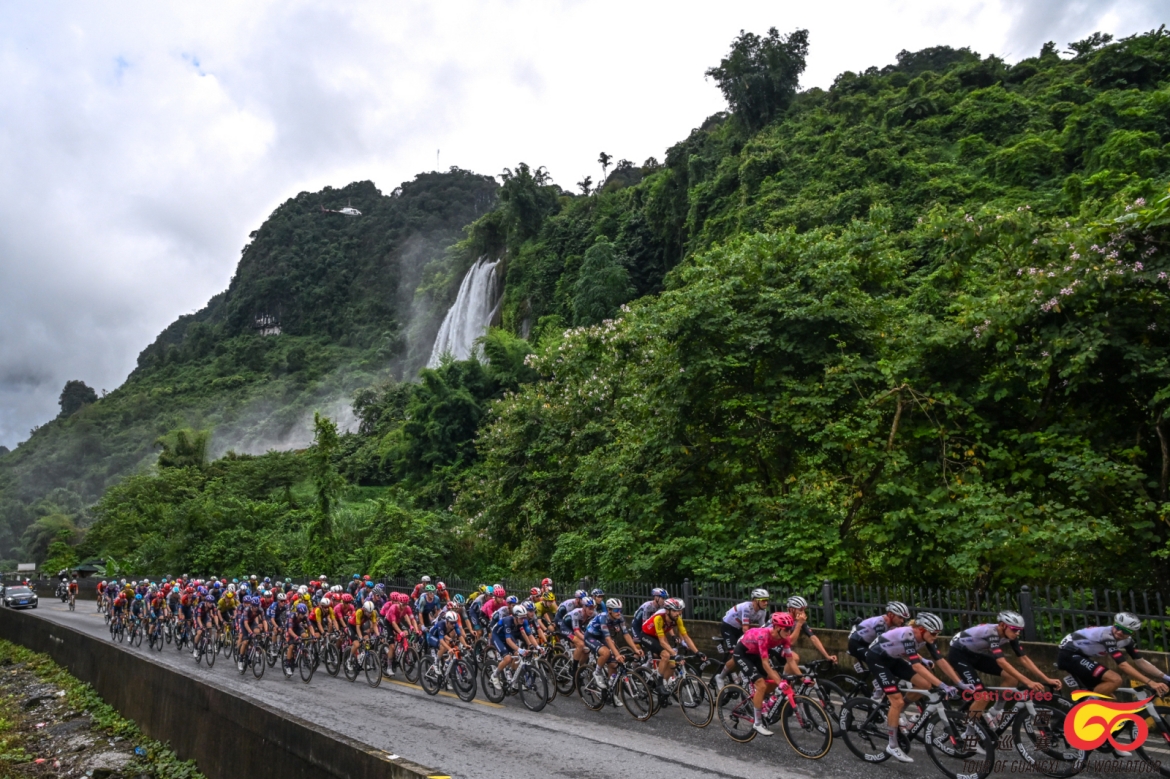 隨著比賽進(jìn)入靖西境內(nèi),車手們逐漸接近本賽段唯一的二級(jí)爬坡點(diǎn)。盡管主車群中不斷有新的進(jìn)攻,但均不見成效,與前方的六名突圍車手時(shí)間差始終維持在1分鐘。