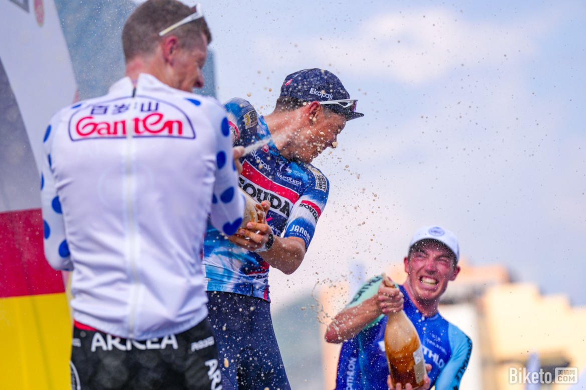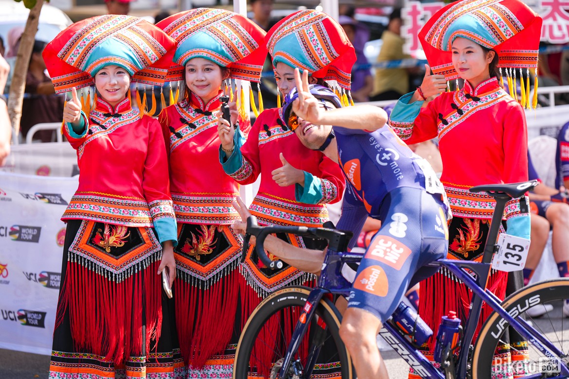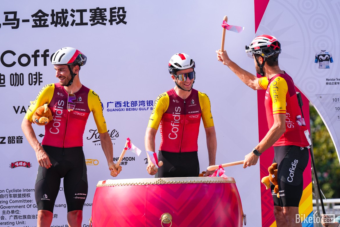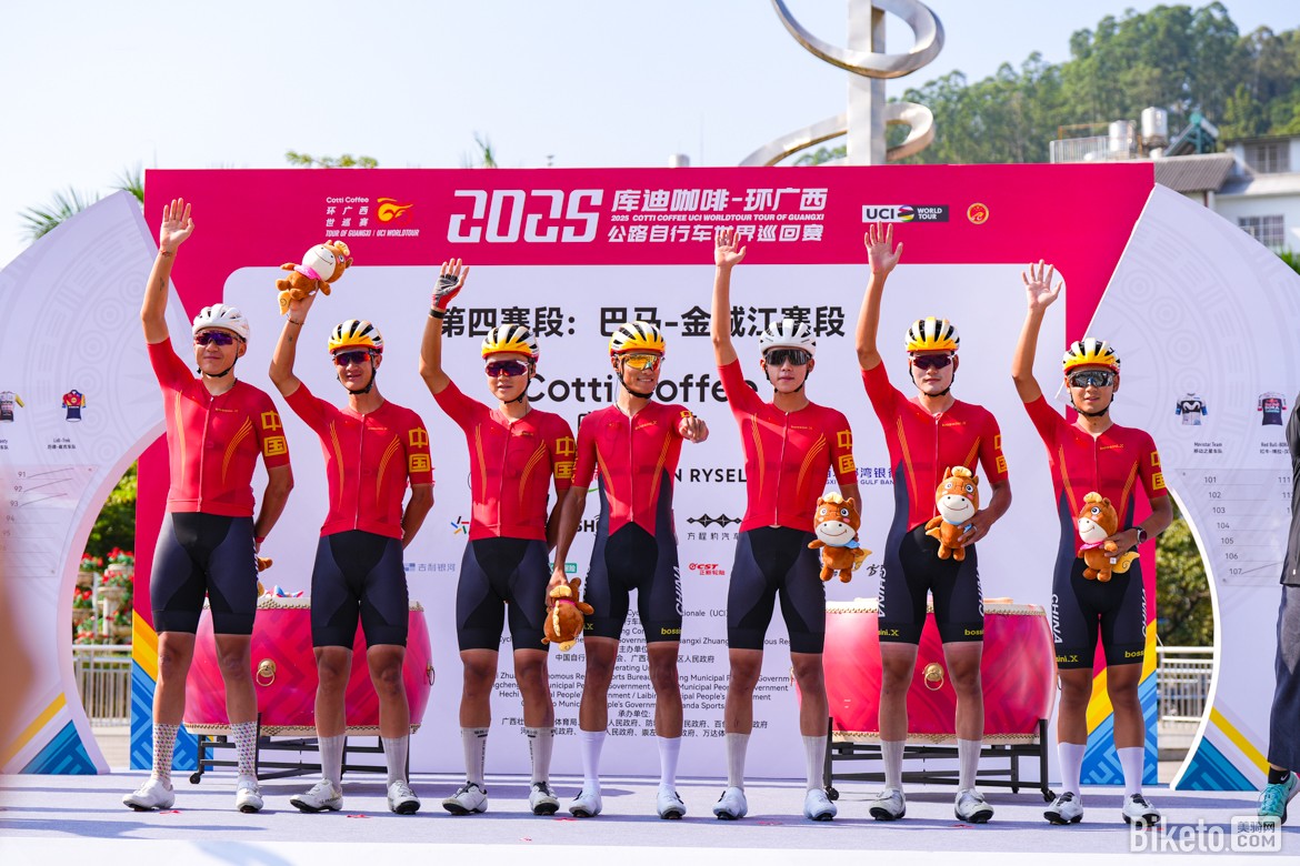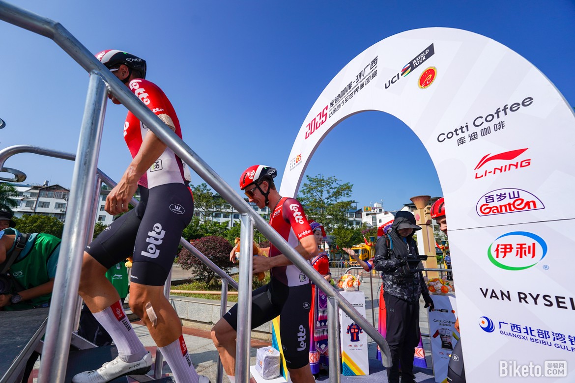 馬尼耶憑借連續(xù)四場(chǎng)賽段勝利,繼續(xù)身披象征個(gè)人總成績(jī)領(lǐng)先的“庫迪咖啡”紅色領(lǐng)騎衫、沖刺積分領(lǐng)先的“廣西北部灣銀行”藍(lán)色領(lǐng)騎衫,以及青年最佳的“李寧”白色領(lǐng)騎衫。阿爾凱亞-B&B酒店車隊(duì)的西蒙·居列爾米(Simon Guglielmi)繼續(xù)保有象征爬坡王的“百歲山”圓點(diǎn)衫;迪卡儂AG2R車隊(duì)的斯坦·德伍爾夫(Stan Dewulf)憑借積極突圍獲得本賽段敢斗獎(jiǎng)。