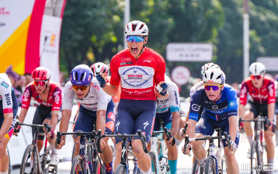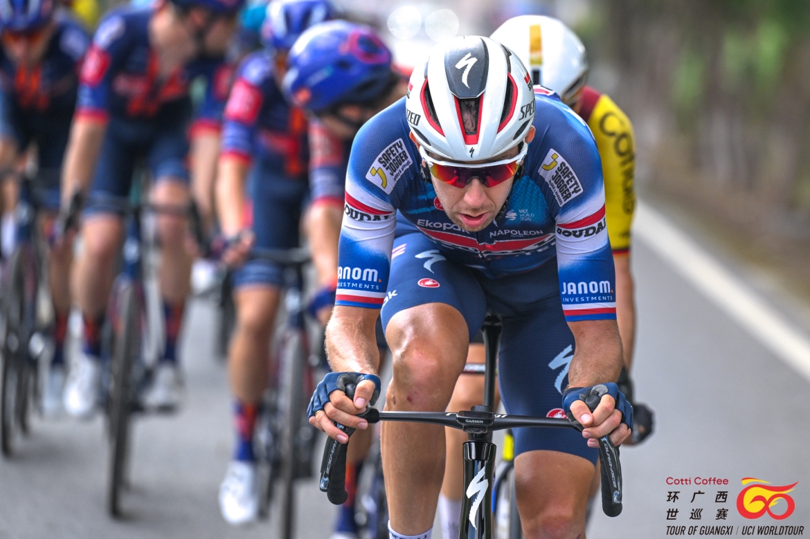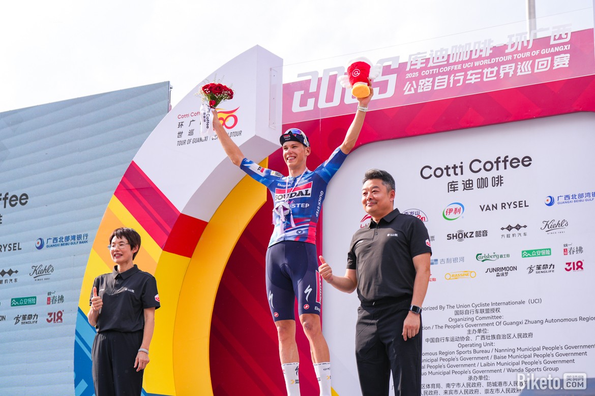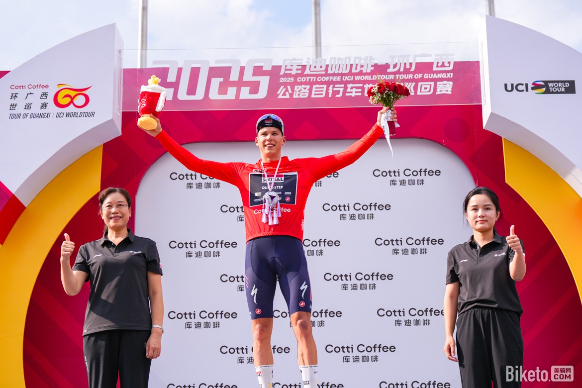 10月17日,2025庫迪咖啡-環(huán)廣西世巡賽第四賽段巴馬—金城江賽段落下帷幕,速的奧快步車隊(duì)車手保羅·馬尼耶(Paul Magnier)沖刺獲勝,保羅·馬尼耶四站全勝的戰(zhàn)績(jī)創(chuàng)造了環(huán)廣西世巡賽最長(zhǎng)連勝紀(jì)錄,成為環(huán)廣西世巡賽歷史上首位四連冠得主。