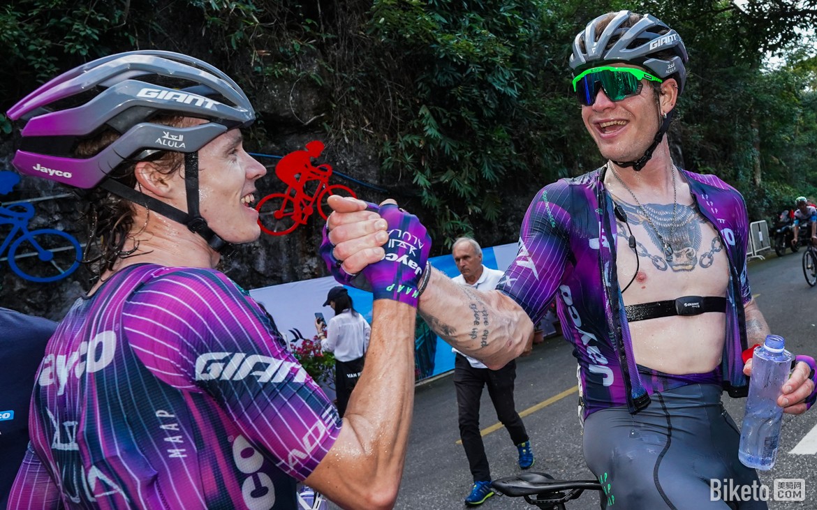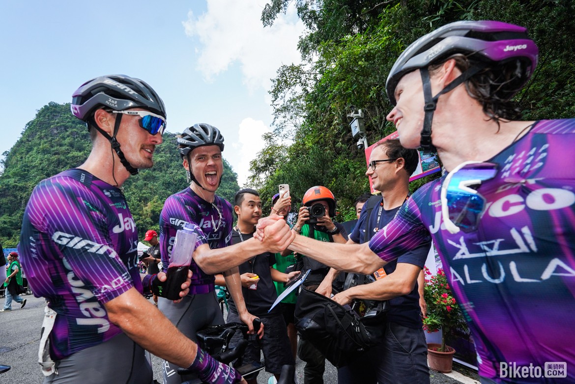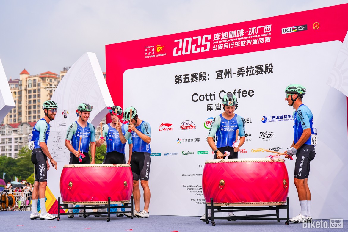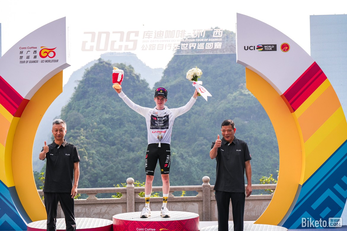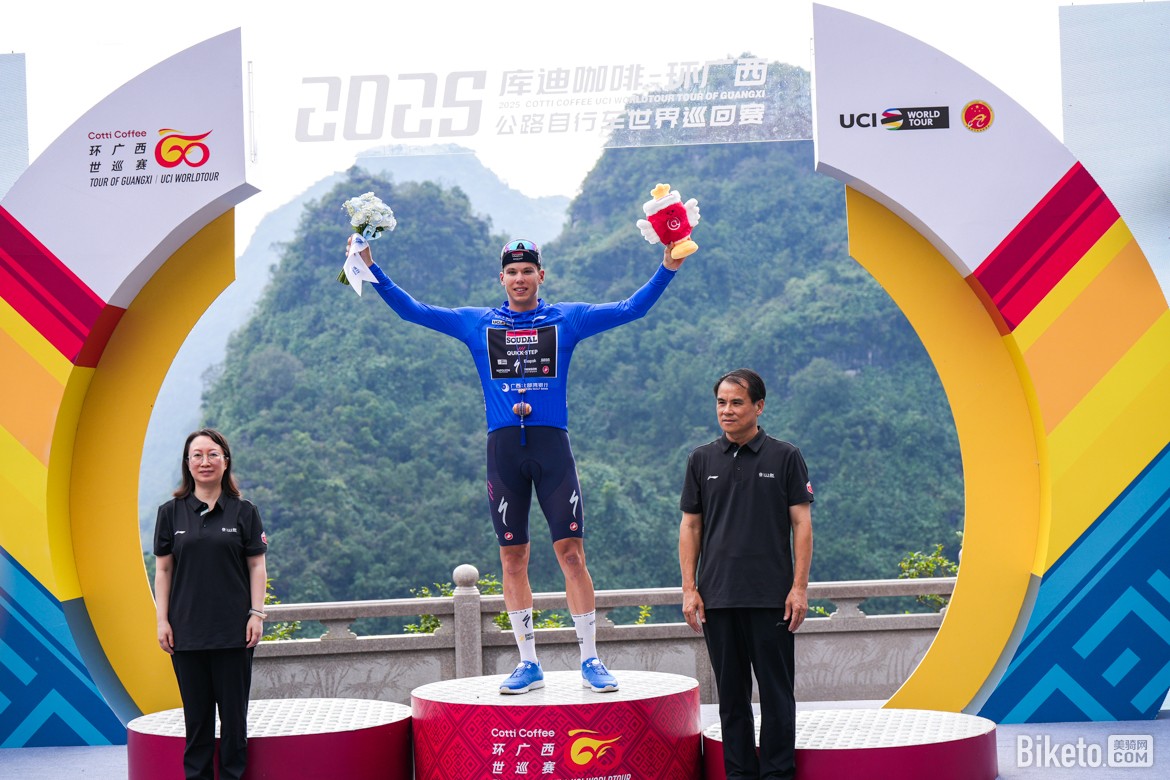 憑借這場勝利,保羅·達(dá)博(Paul Double)順利登頂總成績榜,身披象征個人總成績領(lǐng)先的“庫迪咖啡”紅色領(lǐng)騎衫;而保羅·馬尼耶(Paul Magnier)則繼續(xù)領(lǐng)跑沖刺積分榜,保住了象征沖刺積分領(lǐng)先的“廣西北部灣銀行”藍(lán)色領(lǐng)騎衫;阿爾凱亞-B&B酒店車隊的西蒙·居列爾米(Simon Guglielmi)繼續(xù)保有象征爬坡王的“百歲山”圓點(diǎn)衫;維斯瑪車隊的約爾根·諾德哈根(Jørgen Nordhagen)則獲得青年最佳的“李寧”白色領(lǐng)騎衫。值得一提的是,今天持續(xù)突圍160公里的喜德盛阿斯塔納車隊中國車手蘇浩鈺憑借頑強(qiáng)的斗志獲得本賽段的敢斗獎。