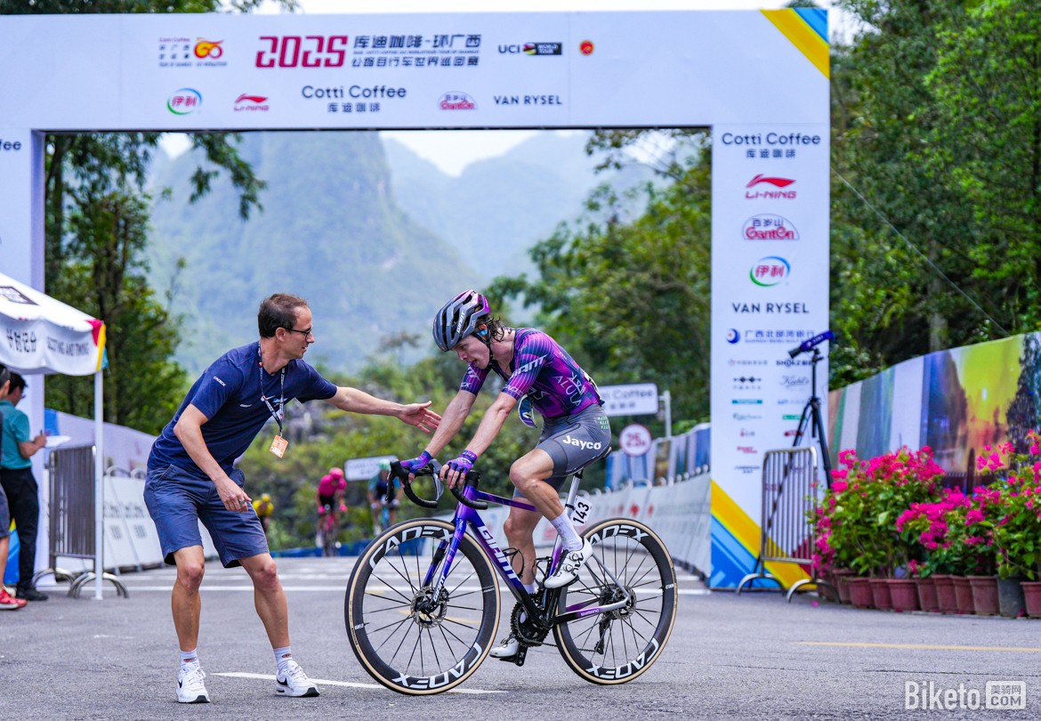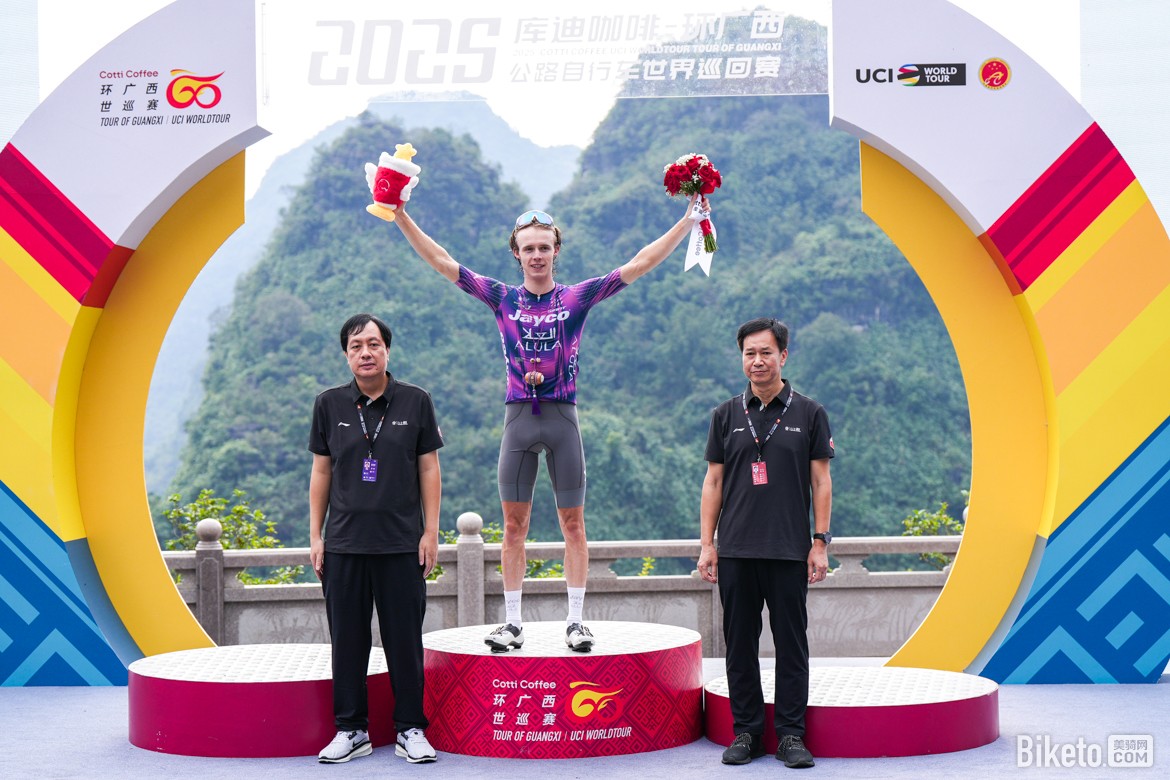 2025庫迪咖啡-環(huán)廣西世巡賽第6賽段結(jié)束,來自杰科-埃爾奧拉車隊的保羅·達(dá)博(Paul Double)率先登頂皇后賽段。
