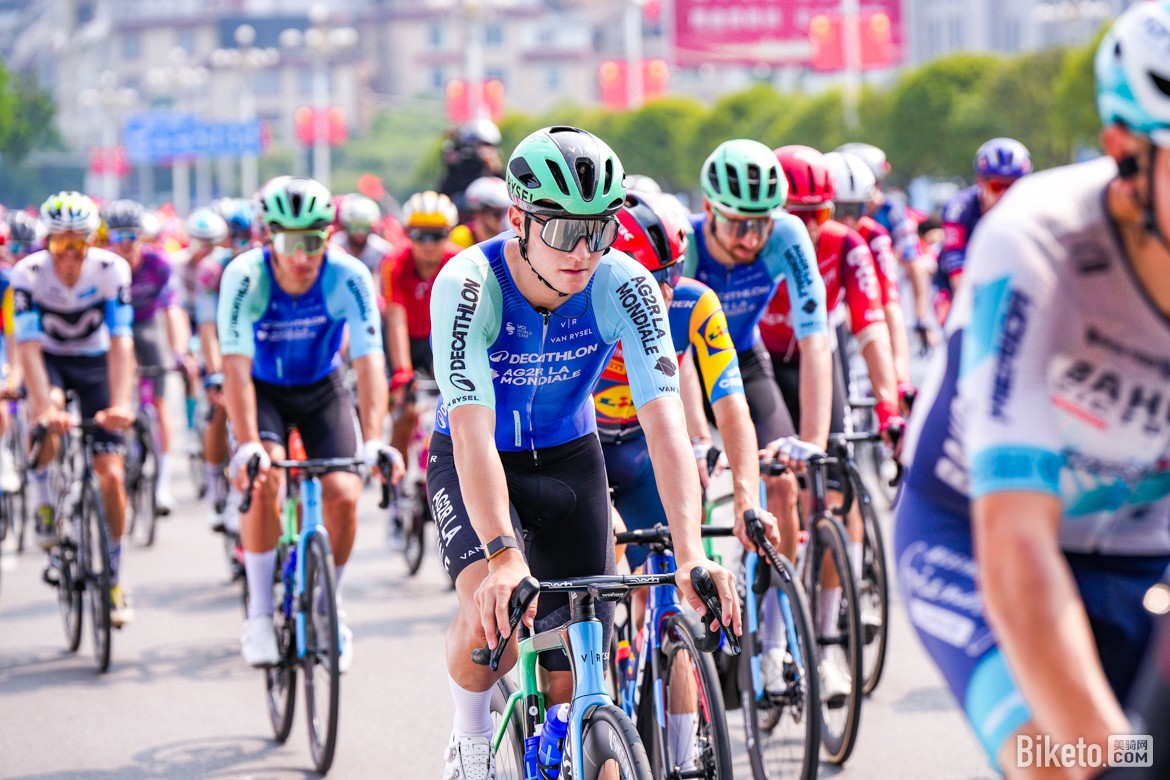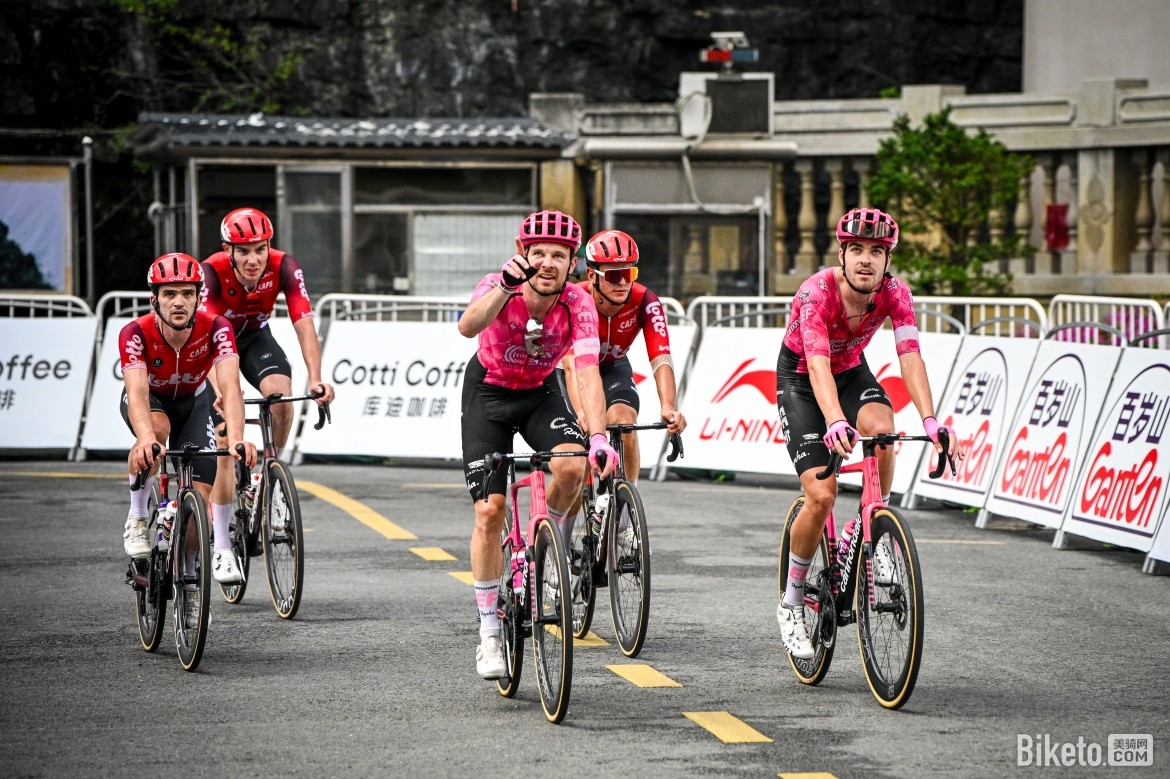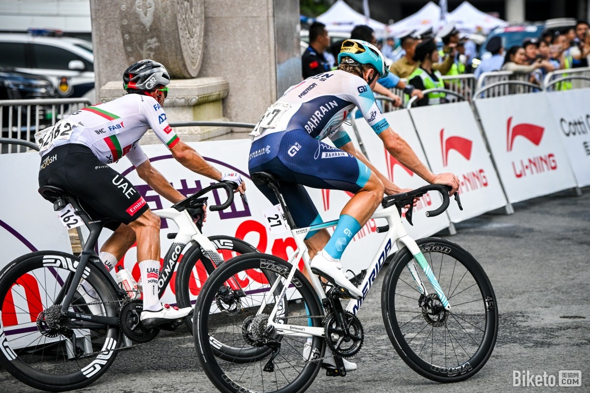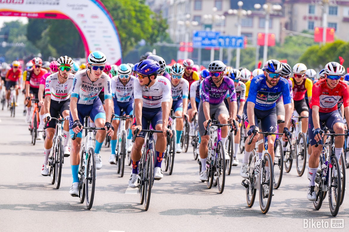 比賽行進(jìn)至60.7公里處時,迎來第一個途中沖刺點(diǎn),突圍小組中的湯姆·帕科(Tom Paquot)、蘇浩鈺(Su Haoyu)和萊恩·吉本斯(Ryan Gibbons)率先沖線,展現(xiàn)出強(qiáng)勁的沖刺能力。此后比賽節(jié)奏趨于平穩(wěn),大集團(tuán)由阿聯(lián)酋航空-XRG車隊掌控追擊節(jié)奏,始終將時間差控制在2分鐘左右。