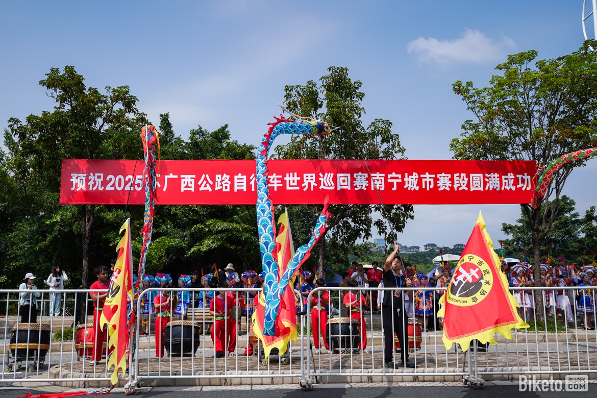 下午14點(diǎn)整,賽事發(fā)車儀式在廣西文化藝術(shù)中心舉行,國(guó)家體育總局自行車擊劍運(yùn)動(dòng)管理中心主任、中國(guó)自行車運(yùn)動(dòng)協(xié)會(huì)主席孫為民,廣西壯族自治區(qū)交通運(yùn)輸廳副廳長(zhǎng)、一級(jí)巡視員陸曉明,廣西壯族自治區(qū)南寧市委常委、副市長(zhǎng)丁偉,廣西壯族自治區(qū)體育局副局長(zhǎng)林凌云,廣西機(jī)場(chǎng)管理集團(tuán)副總經(jīng)理李峰,廣西壯族自治區(qū)黨委政法委二級(jí)巡視員覃慶業(yè),廣西壯族自治區(qū)商務(wù)廳二級(jí)巡視員曹柯笛,廣西壯族自治區(qū)文化和旅游廳二級(jí)巡視員劉國(guó)建,廣西壯族自治區(qū)外事辦二級(jí)巡視員閉建豐,萬(wàn)達(dá)文旅集團(tuán)總裁張春遠(yuǎn),庫(kù)迪咖啡副總裁&商業(yè)化負(fù)責(zé)人岳凱等領(lǐng)導(dǎo)和嘉賓出席了發(fā)車儀式。廣西壯族自治區(qū)南寧市委常委、副市長(zhǎng)丁偉致辭,國(guó)家體育總局自行車擊劍運(yùn)動(dòng)管理中心主任、中國(guó)自行車運(yùn)動(dòng)協(xié)會(huì)主席孫為民宣布開(kāi)賽。