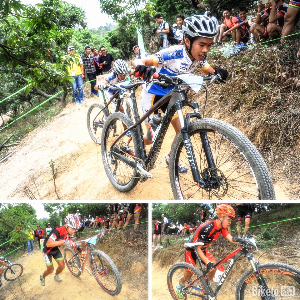 山地車越野賽在距離元渝工廠不遠處的賽道上進行。男子普通組的比賽因為參賽人數(shù)過多而被分成多個小組發(fā)車,再統(tǒng)一計算成績;最終米賽爾車隊的林曦力壓另一小組發(fā)車的李昌德獲得冠軍,李柏霖、胡維分列三四名。女子組方面,何沖鄧湖平兩人盡管實力超強,但也難敵法國人Cecile Ravanel,兩位諾飛客車隊的選手黃合旬和蔡雅羽獲得第四第五名。精英組的比賽競爭激烈,發(fā)車后勢頭最猛的“小老外”李恩廣遭遇爆胎,最后沒能獲得名次;郭鑫偉與魏魁糾纏數(shù)圈之后前者以更充足的后勁沖得冠軍。代表KS出戰(zhàn)的Cedric Ravanel使用軟尾車拿到了第三名,羅丹志、梁建泳和馬偉南分獲四到六名。