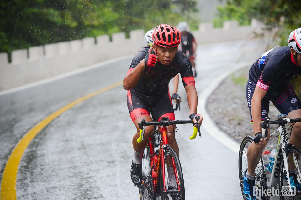 比賽準(zhǔn)時在早上7:30分進(jìn)行。山下滂沱大雨,山上并不一定如此。雖然山下的雨是連綿不斷,并且越下越大,但是山上卻是一段一段的,不盡相同。這邊山下起了小雨,在那邊山卻停了。車手要面對著不斷被淋濕,然后被吹干,接著又被淋濕的挑戰(zhàn)。有車友賽后笑言,就是在一段一公里的路,都會遇到不同的天氣的變化。因此,我們在這里要為所有在今天成功完賽比賽的車手點(diǎn)贊,因?yàn)樗麄冋娴脑忈屃烁裉m楓度所承載的精神——偉大的堅持。